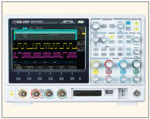 - синхронизация и декодирование сигналов по протоколам последовательных шин I2C, SPI, UART/RS232, CAN, LIN (опция DC);