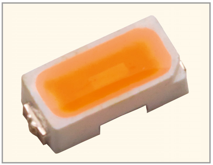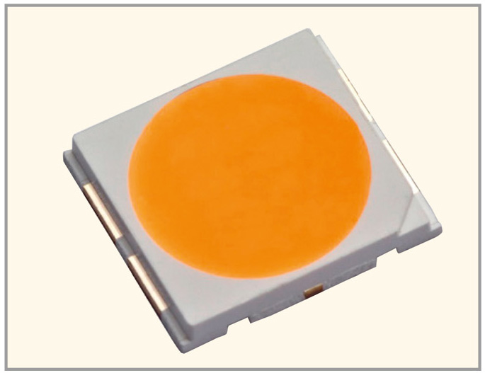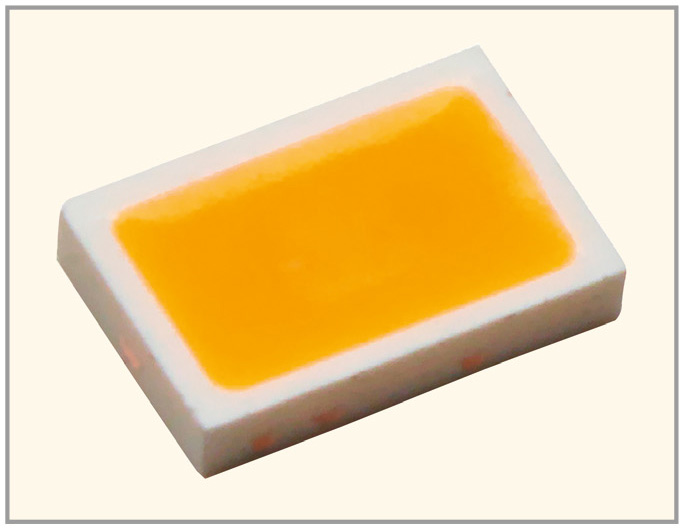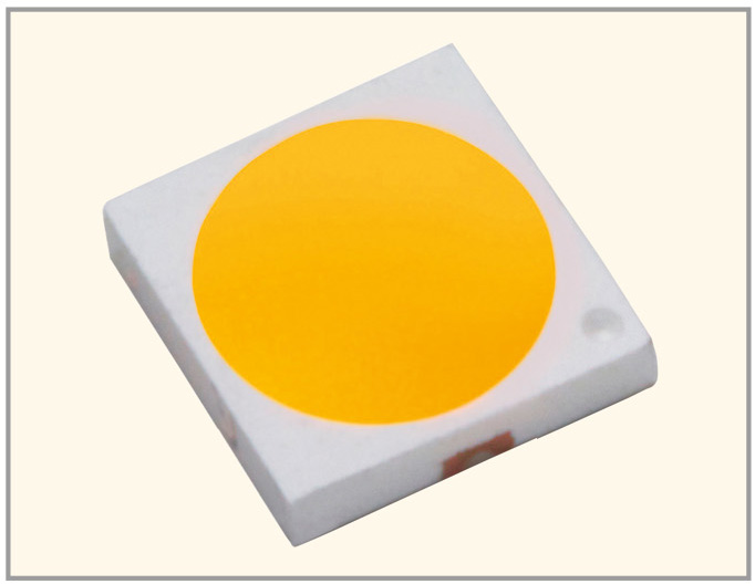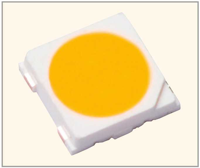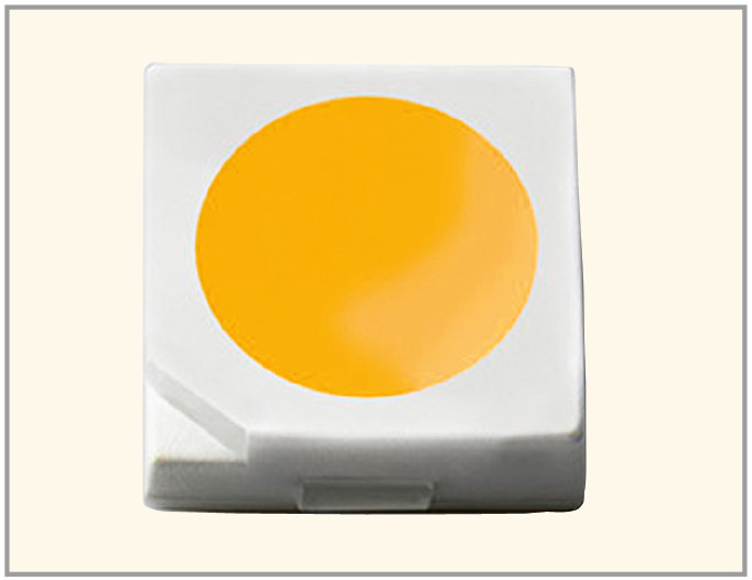 Этот светодиод выпускается в стандартном корпусе размером 3,5 × 3,5 мм, который по топологии полностью соответствует аналогам других производителей. Данные светодиоды перекрывают диапазон цветовой температуры от 2700 до 6500 K, то есть имеют все оттенки белого света – тёплый, естественный и холодный. Номинальный ток для них составляет 100 мА, типичное значение напряжения при данном токе – 3,1 В. Угол кривой светораспределения равен 115°, тепловое сопротивление – 20°C/Вт.