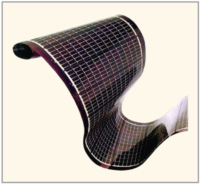 Модуль на основе тонкоплёночного кремния имеет самый низкий (из рассмотренных ранее типов) КПД – от 6 до 10%, но вместе с тем более широкий спектр поглощаемого солнечного излучения [2]. К особенностям модуля важно отнести его механическую гибкость (можно устанавливать на неровных поверхностях) и работу в условиях подвижных креплений при незначительной деформации основания. Кроме того, модуль хорошо работает в рассеянном свете. Условием надёжной и долговременной эксплуатации является заземление одного из полюсов модуля для предотвращения коррозии и снятия статического заряда.