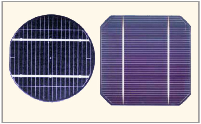 Самый высокий КПД преобразования солнечной энергии в электрический ток (от 14 до 20%) имеет модуль на основе структурированного монокристаллического кремния. В разрезе такой модуль напоминает слоёный пирог. Высокая себестоимость технологии выращивания кристаллов и хорошая воспроизводимость параметров таких модулей связаны с тем, что в них реализована однородная кристаллическая структура кремния с точным позиционированием атомов, участвующих в преобразовании энергии. Однако фотоэлектрические пластины имеют неровную форму, и по краям модулей происходит потеря энергии.