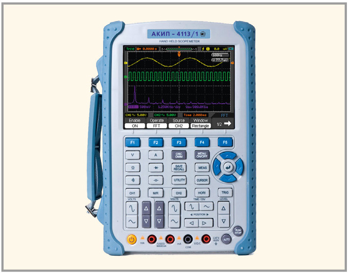 Если осциллограф выполнен в виде портативного устройства, то, зачастую, он совмещается с мультиметром. Такие приборы называют скопметрами. Пример такого прибора показан на рисунке 3. Неоспоримыми преимуществами таких устройств являются независимость от питающей сети, компактность, мобильность и универсальность.