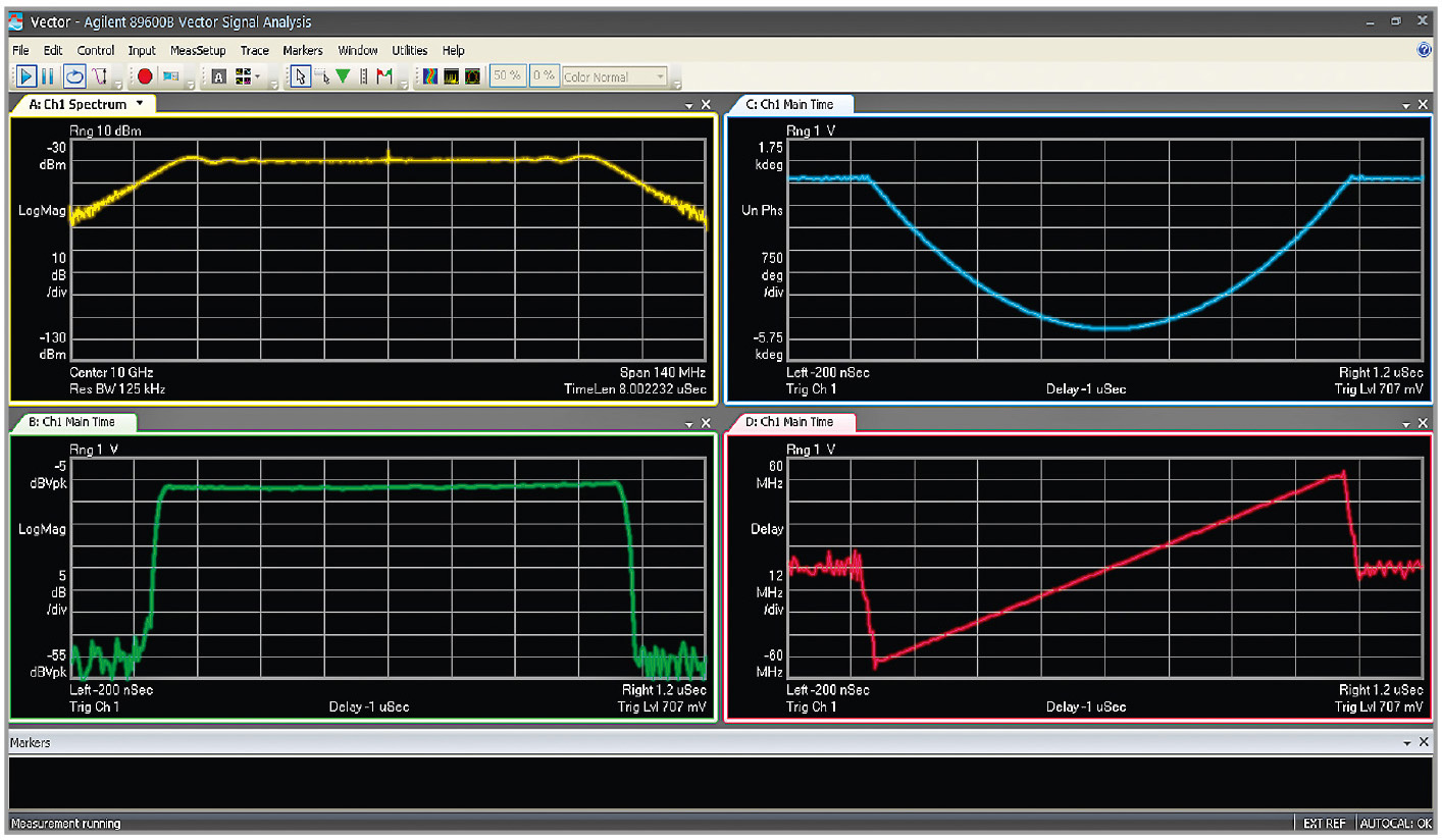 Для углублённого анализа среду SystemVue и библиотеку W1905 можно объединить с программным обеспечением 89600 VSA. Программное обеспечение 89600 VSA предлагает передовые инструментальные средства общего назначения для измерения характеристик сигналов во временной, частотной и модуляционной областях (см. рис. 7). Это программное обеспечение может работать как в ПК, так и внутри определённых типов анализаторов сигналов, логических анализаторов и осциллографов компании Keysight. Кроме того, объединение SystemVue/89600 обеспечивает взаимодействие с рядом измерительных приборов, которые можно использовать для проверки характеристик разработанных аппаратных средств. Примерами могут служить анализаторы сигналов N9030A серии PXA, логические анализаторы серии 16800 и осциллографы серии 90000Х семейства Infiniium компании Keysight.