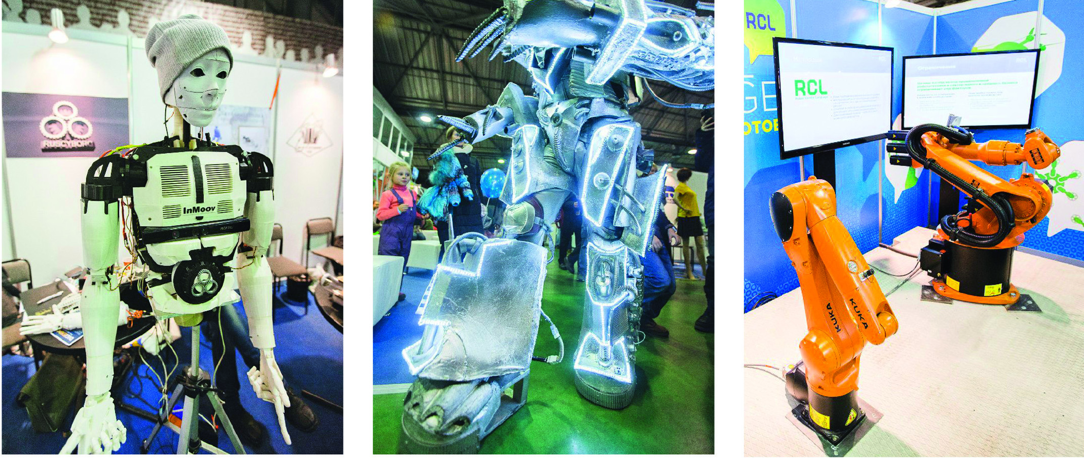 Экспозиция выставки делилась на несколько направлений: андроидные роботы, образовательная робототехника, промышленные роботы, квадрокоптеры, бытовая робототехника, 3D-печать, дополненная и виртуальная реальность.