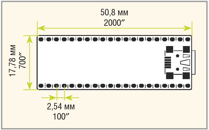 Данный модуль изготовлен в виде малогабаритной платы, которая прекрасно вписывается в стандартный панельный разъём DIP40. Модуль имеет размеры 50,8 ´ 17,78 мм, а вес модуля составляет всего 6 г (см. рис. 2).