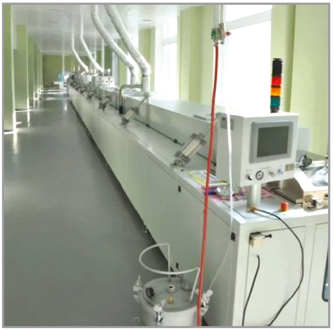 Второй этап – литьё керамической плёнки. Литьё керамической ленты проводили на промышленной установке КЕКО Equipment Ltd. (Словения). Литьевая машина для производства керамической ленты представляет собой высокопроизводительную линию для массового производства (см. рис. 2).