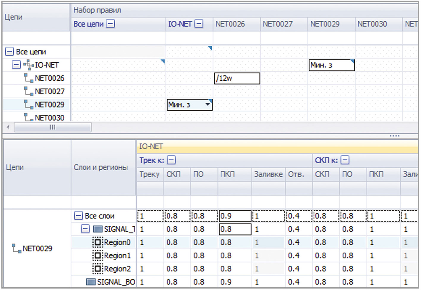 Таким образом, комбинируя использование регионов и задание правил для слоёв и конкретных цепей, конструктор может решить любую задачу удобным для себя способом.