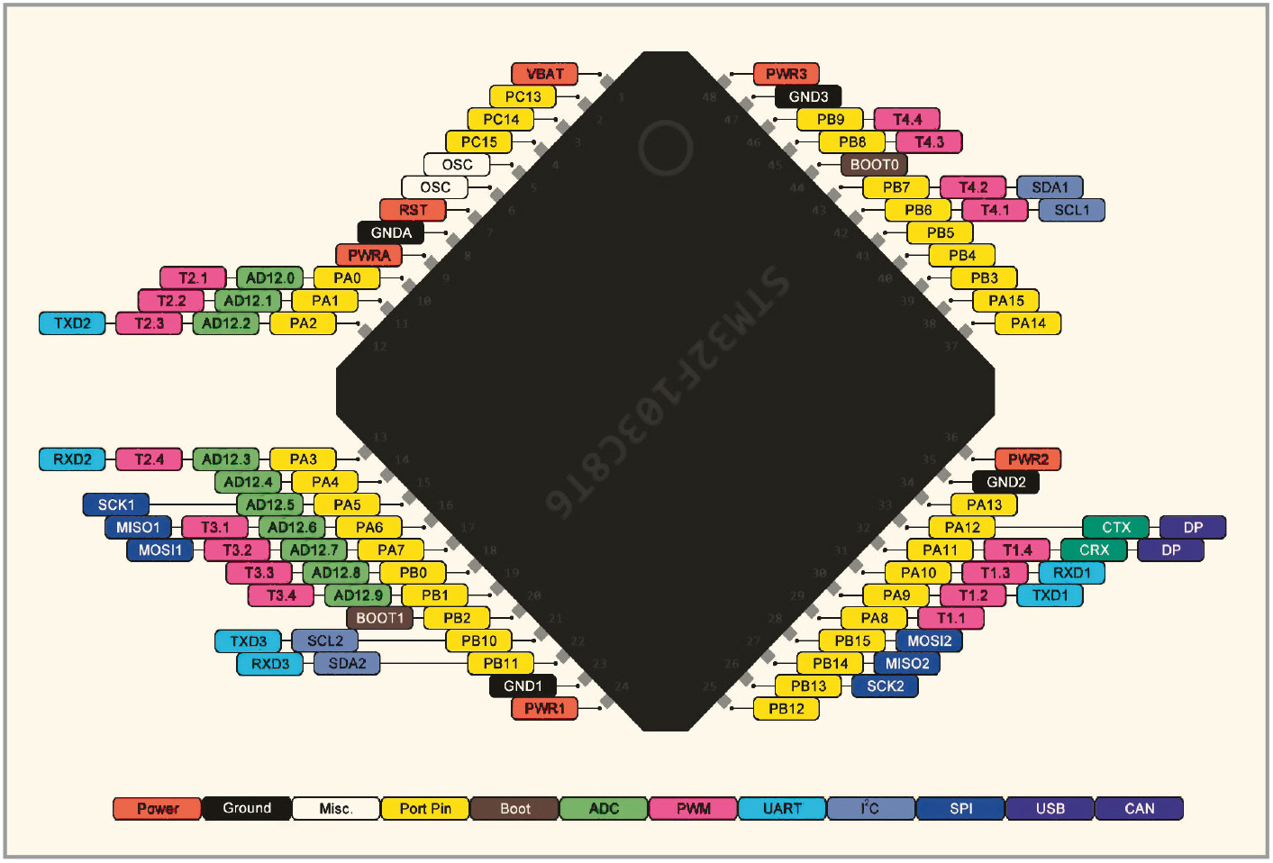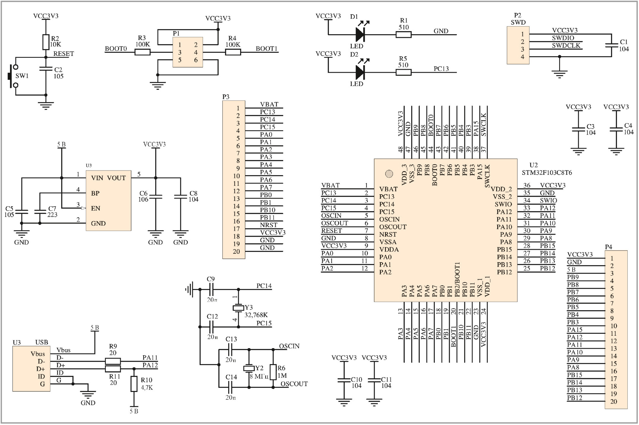 Основой F103C8T6 является микроконтроллер STM32F103C8T6.