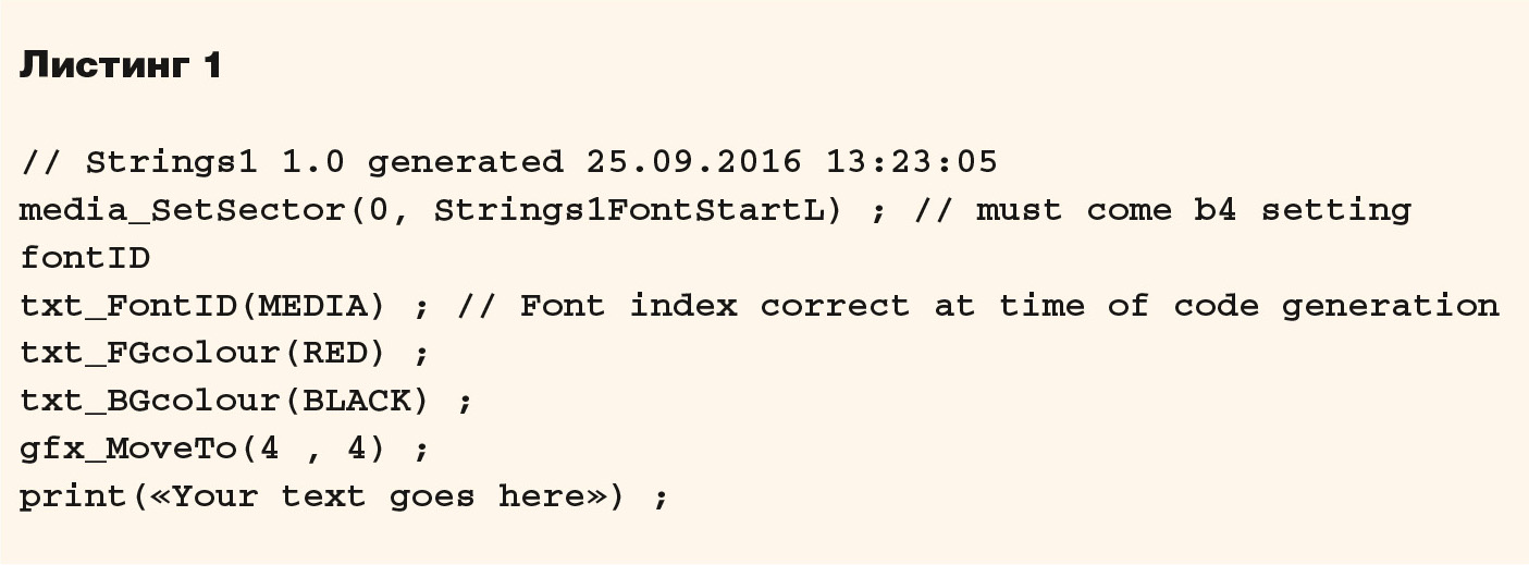 В поле Font открывшегося редактора необходимо выбрать из выпадающего списка нужный шрифт. Для выбора доступны все шрифты Windows. В поле Size задаётся размер шрифта. Выбранный шрифт в дальнейшем будет сохранён в памяти µSD-карты только с заданным размером. После нажатия на кнопку Paste Code диспетчера объектов в заданном месте области редактора появится блок кода примерно такого вида, как в листинге 1.