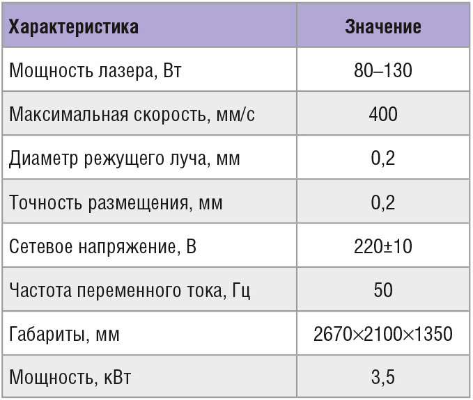 Технические характеристики лазерного станка представлены в таблице 4.