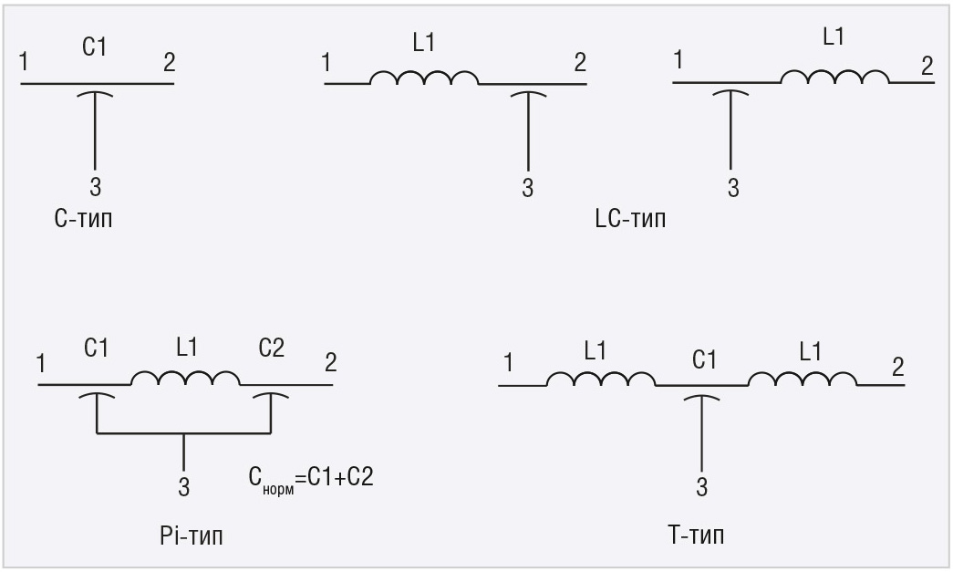 В результате проведения целого ряда НИОКР за последние годы существенно расширена номенклатура выпускаемых НИИ «Гириконд» помехоподавляющих фильтров нижних частот, основным функциональным элементом которых является керамический конденсатор. Ёмкостные и индуктивно-ёмкостные фильтры с различными вариантами схем элементов представлены в уже известных и применяемых потребителями сериях Б24, Б25, Б26. Внешний вид фильтров и реализуемые схемы показаны на рисунках 1 и 2 соответственно. Основные технические параметры фильтров приведены в таблице 3.