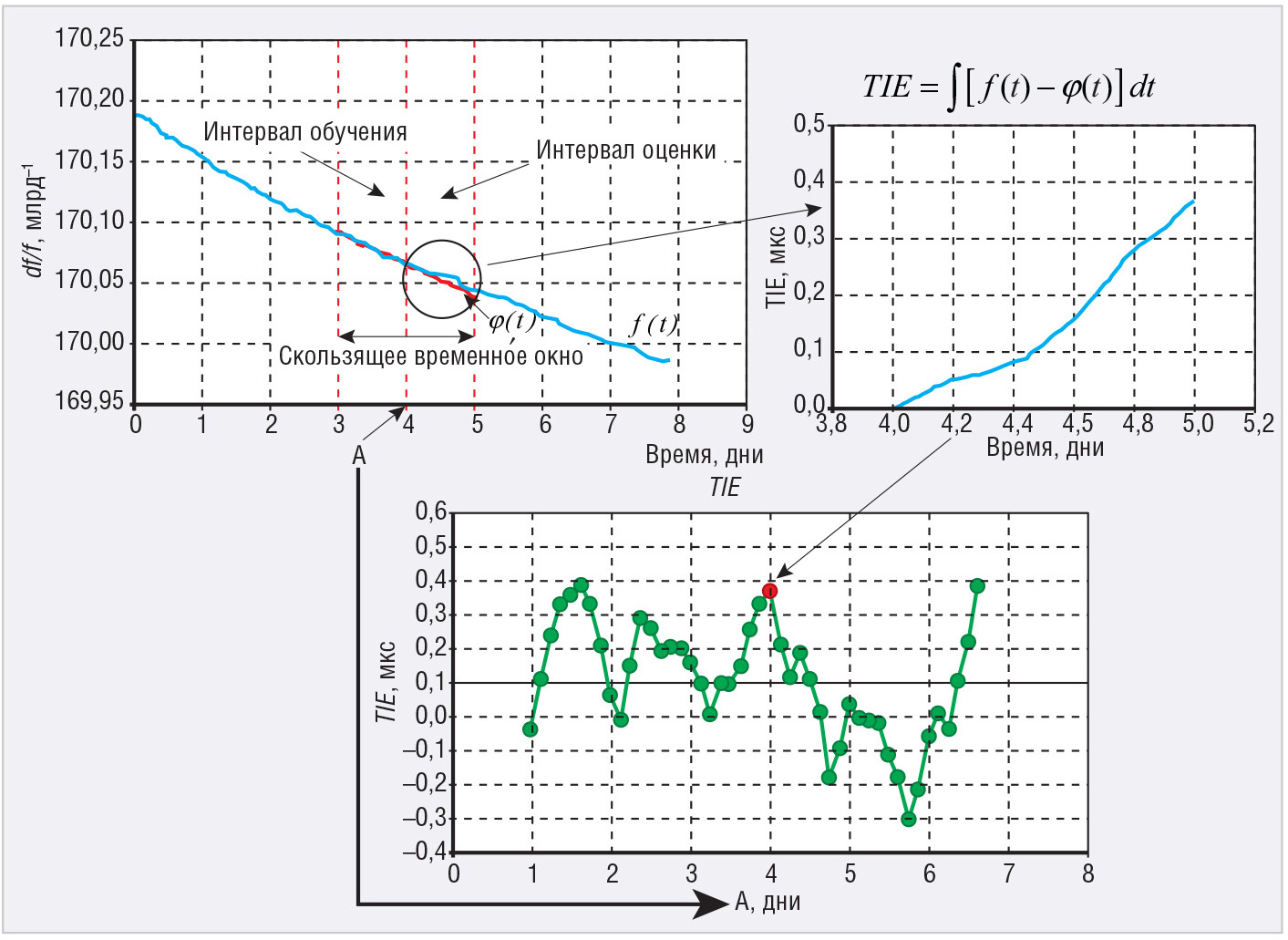 На рисунке 3 показан пример оценки временно́й ошибки кварцевого генератора по описанной методике.