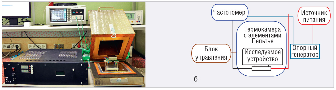 Температурная камера может иметь свои источники погрешности, например включение/отключение холодильника при определённой температуре. При оценке временно́й ошибки следует учитывать эти нюансы и подбирать испытательное оборудование и режимы работы с особой тщательностью. Для некоторых испытаний была использована температурная камера на основе элементов Пельтье (см. рис. 7).