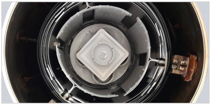 Пластину из нитрида алюминия с участками УНТ с размещёнными на них сверху образцами монокристаллического кремния устанавливали в специальный тигель (см. рис. 5) и помещали в реактор, расположенный в рабочей зоне вакуумной печи и представляющий собой многослойный стакан из листов молибдена и с молибденовыми нагревателями, смонтированными на внутренней поверхности стакана (см. рис. 6).