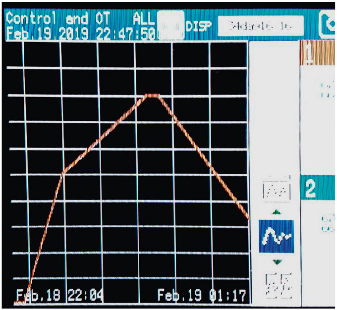 Пропитку (силицирование) проводили при +1500...1600°C и остаточном давлении в вакуумной камере 10–3...10–1 Па в течение 15 мин с последующим охлаждением печи до комнатной температуры. График пропитки УНТ представлен на рисунке 7.