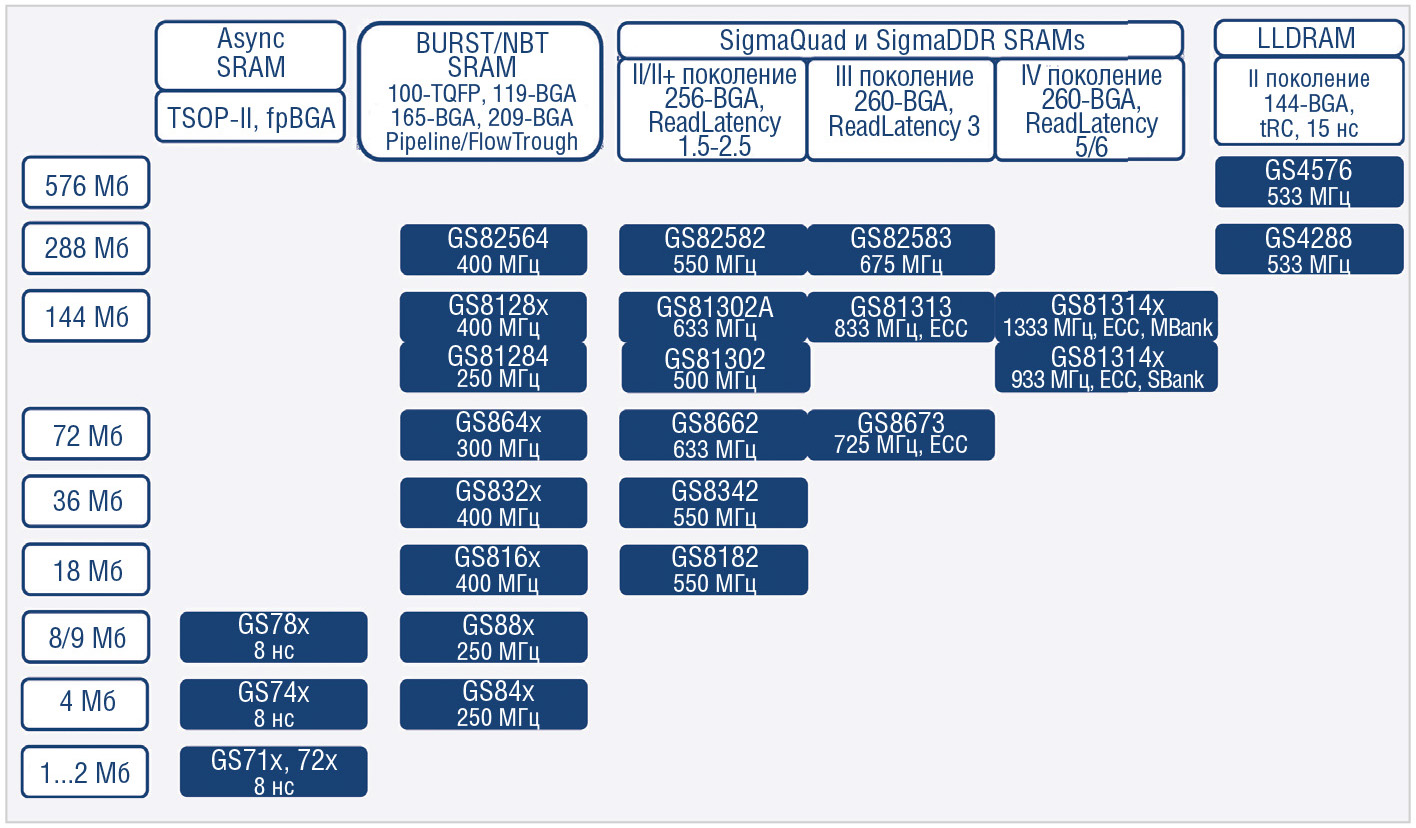 На рисунке 3 представлены основные семейства микросхем памяти GSI.