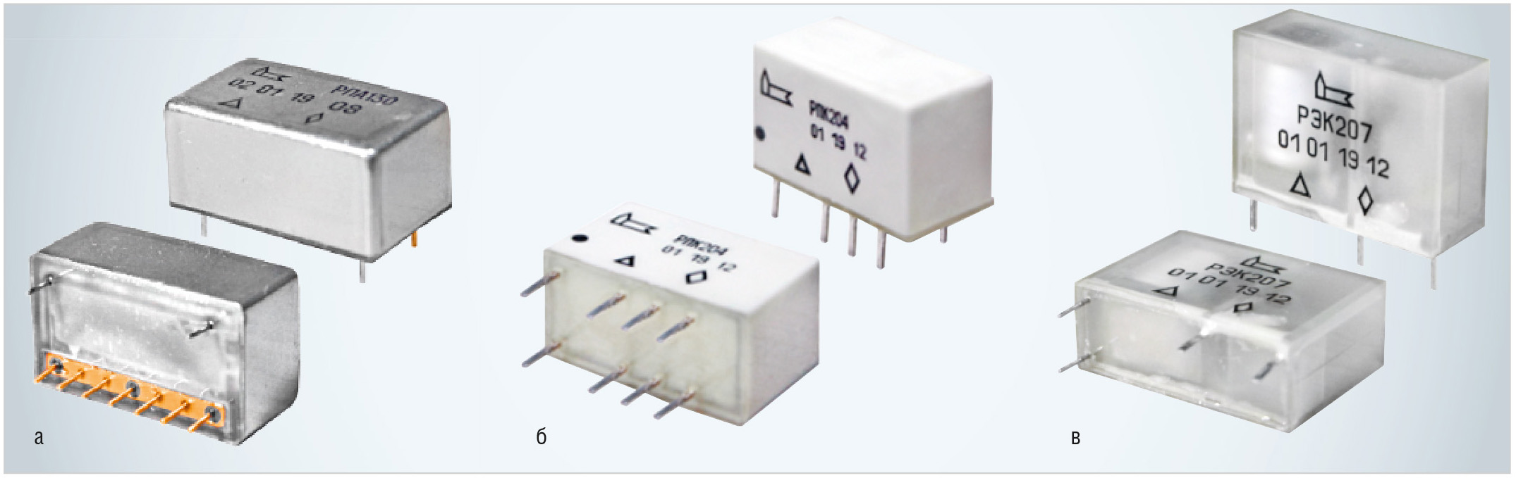 Реле РЭК207 (см. рис. 2в) ЛУЮИ.647612.005 ТУ – реле слаботочные, низкочастотные, электромагнитные, неполяризованные, негерметичные.