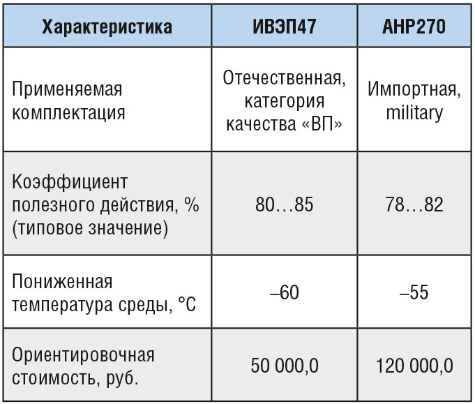 В таблице 1 приведены преимущественные характеристики ИВЭП47.