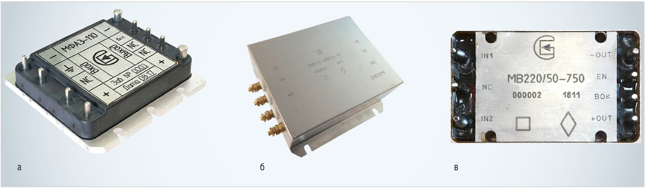 Модули МФП (см. рис. 7б) являются аналогами модулей B84113H0000B030, B84113H0000B060, B84113H0000B110, B84143В0008R000 и B84143В0012R000 фирмы EPCOS (TDK) (Германия).