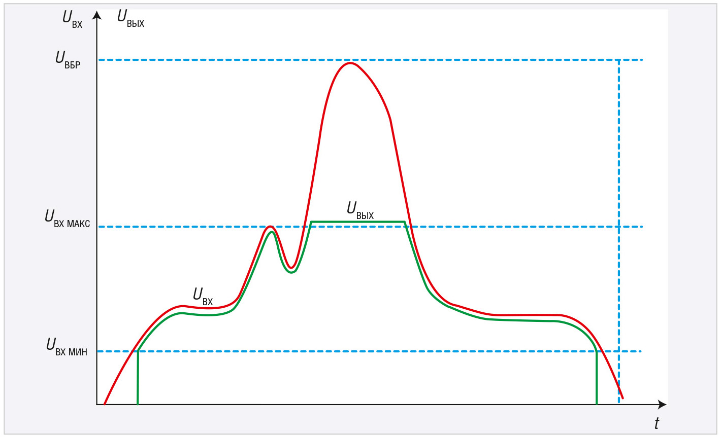 На рисунке 1 графически демонстрируется алгоритм работы ОВН серии МДН (изготовитель – ООО «АЭИЭП», г. Москва) при переходных процессах, возникающих в сети электропитания ЛА.
