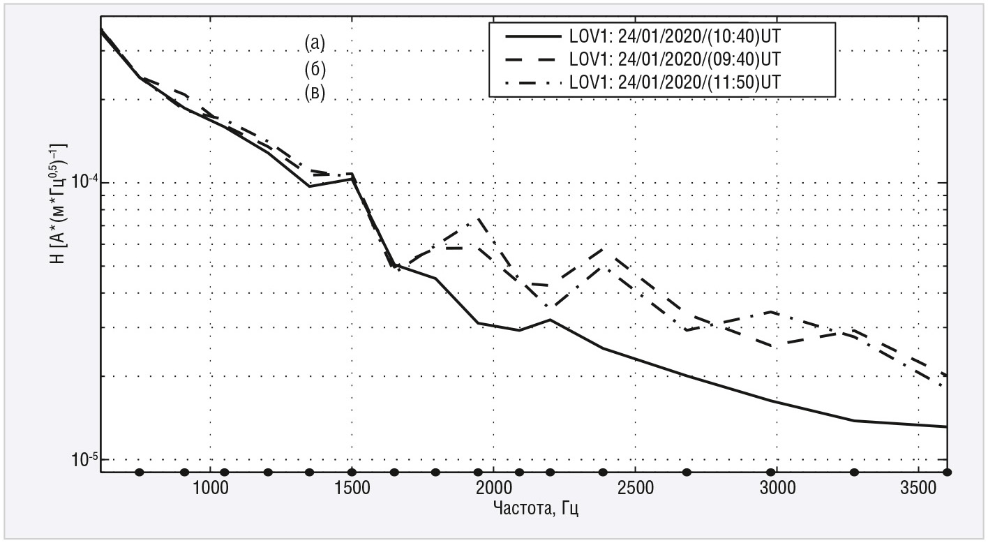 Как отмечалось ранее, измерение спектральных характеристик поля атмосфериков (ПА) позволяет получать информацию как о свойствах распространения радиоволн, входящих в их спектр, так и о свойствах среды распространения сигнала, какой является волновод земляионосфера [2, 3].