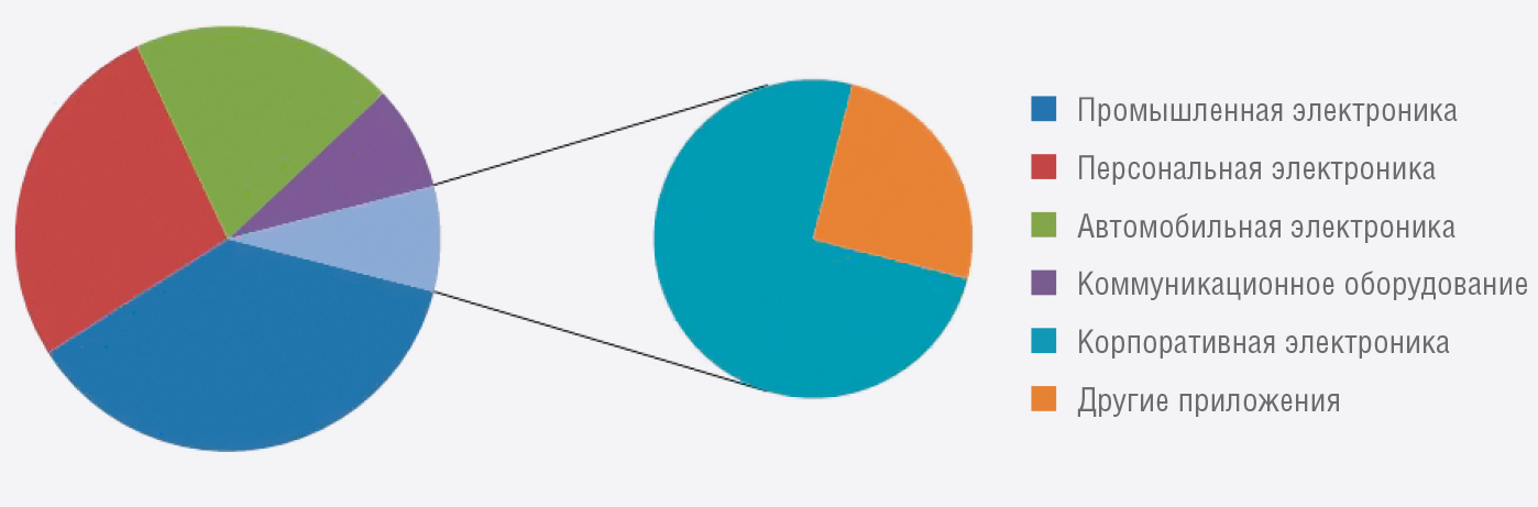 Наибольший вклад в суммарный доход TI вносят компоненты и законченные устройства, предназначенные для промышленной и автомобильной отраслей (рис. 17).