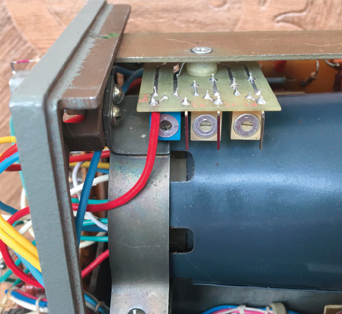 - Три подстроечных резистора R23…R25 установлены на отдельной плате. Плата крепится у задней панели за верхнюю пластину каркаса снизу винтом впотай через втулку (рис. 4).