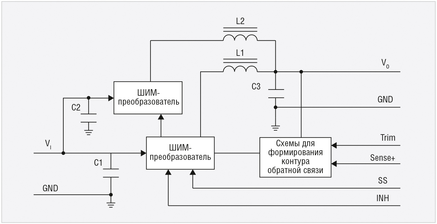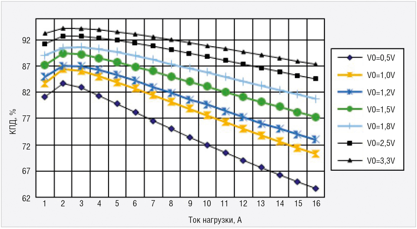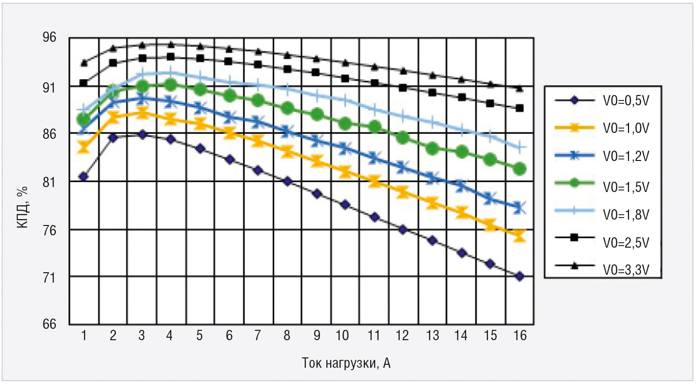 Программируемый диапазон выходных напряжений позволяет компоновать рассмотренные неизолированные POL-преобразователи в различные схемы и обеспечивать питанием современные высокоэффективные цифровые схемы.