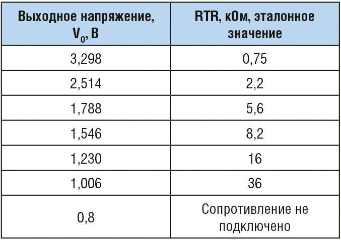 В табл. 2 приведены значения выходного напряжения в зависимости от значения резистора RTR.