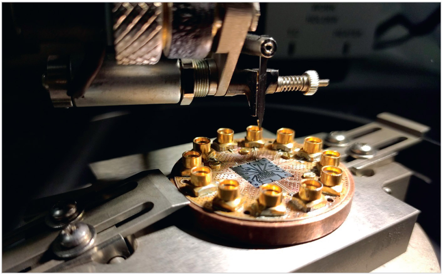 Проблемам квантовых вычислений уделяется особое внимание также и в России. Так, например, в научно-исследовательском центре RQC [23], а также и в лаборатории искусственных квантовых систем МФТИ, разрабатываются квантовые интегральные схемы на основе кубитов из сверхпроводников (рис. 2) [24].