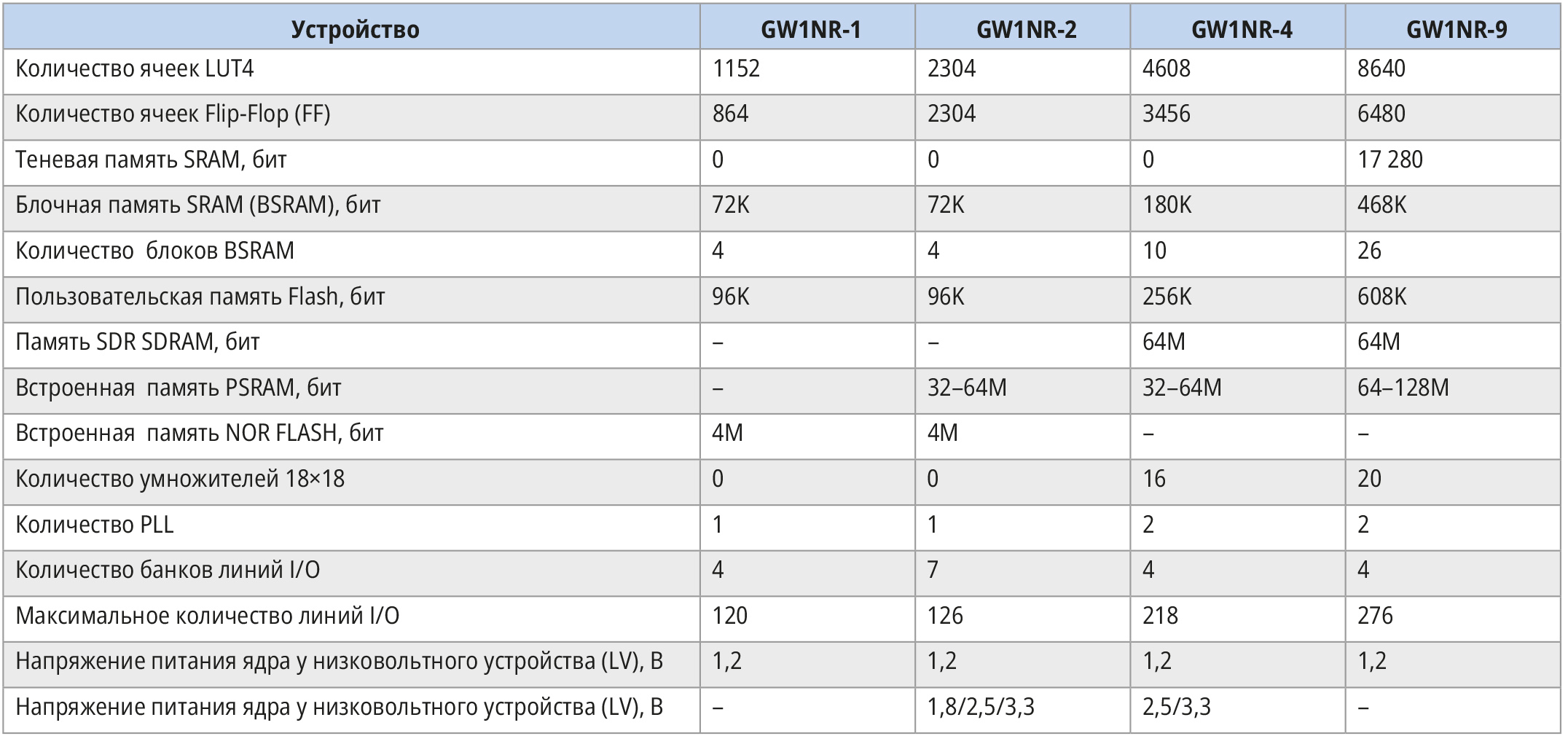 Доступная в настоящее время номенклатура серий семейства GOWIN LittleBee представлена в табл. 2–8. Данные взяты с сайта GOWIN Semiconductor Corp [1].