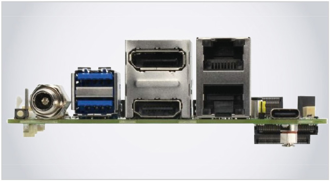 Ещё один вариант – модуль Up Squared Pro 7000 с процессором Intel Core i3-N305. Есть вариант чипа Intel N50 с 4 Гбайт ОЗУ и 32 Гбайт внутренней памяти. И вариант с Intel N97, Intel Atom x7425E, Core i3-N305 с максимальной комплектацией 16 Гбайт ОЗУ и 64 Гбайт внутренней памяти. Вид сбоку модуля Up Squared Pro 7000 представлен на рис. 6.