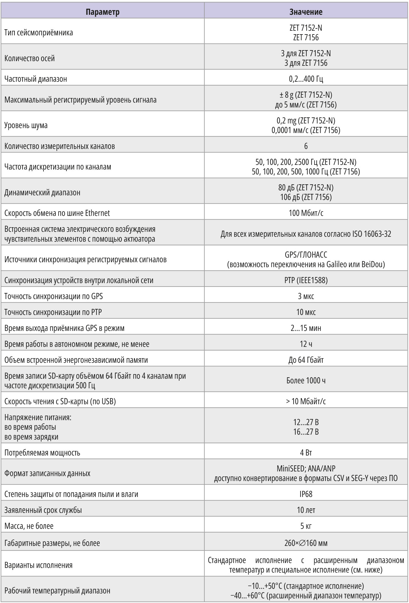 В табл. 1 представлены технические характеристики сейсмографов отечественных разработчиков моделей ZET 7152-N и ZET 7156.