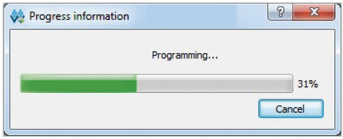 В поле «Access Mode» этого окна выбираем из выпадающего меню тип памяти ПЛИС для доступа, в нашем случае – «Embedded Flash Mode», то есть встроенную Flash-память, как показано на рисунке. Путь к загружаемому в ПЛИС файлу задаётся в графе FSFile. По умолчанию там уже задан путь к файлу битового потока нашего проекта fpga_project.fs. Для сохранения заданных параметров загрузки кликаем по кнопке Save. Затем запускаем загрузку в ПЛИС с помощью иконки «Program/Configure» из главного меню окна программатора Gowin Programmer. Ход загрузки конфигурации в ПЛИС отображается нарастающей шкалой, показанной на рис. 24.