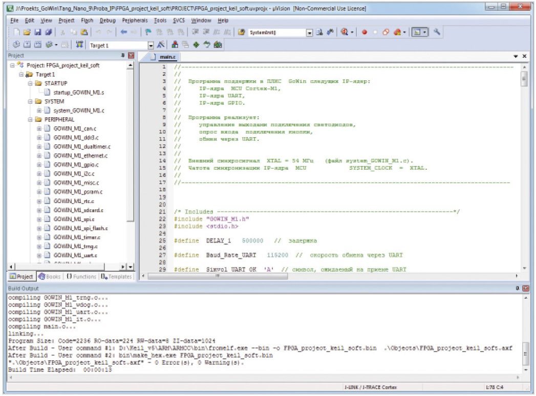 Для получения дополнительной информации по использованию IDE ARM Keil MDK для разработки встроенного ПО процессорных IP-ядер ПЛИС GOWIN рекомендуется обратиться к источнику [3].