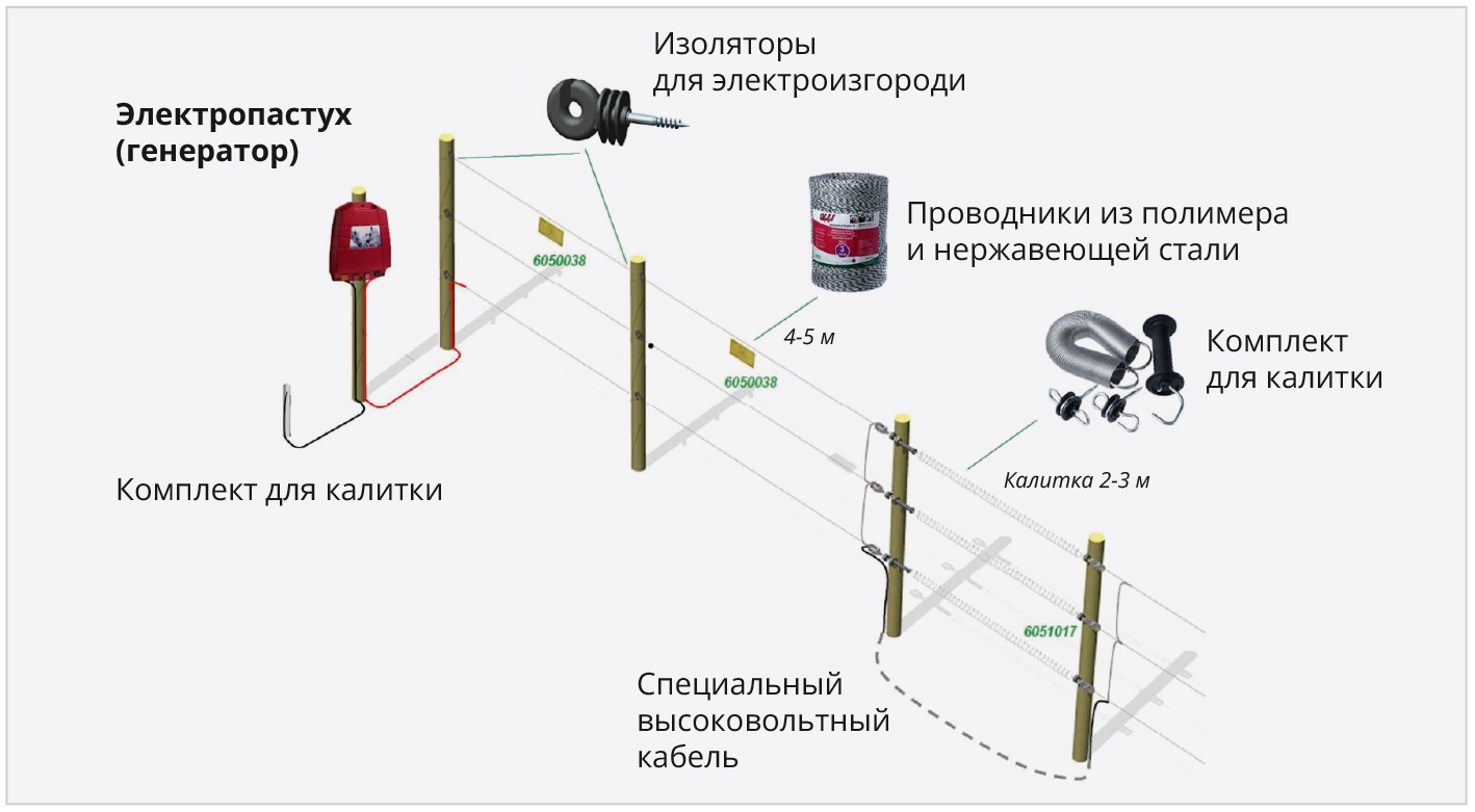 Одна из важнейших деталей при выборе комплектующих для электропастуха – провода и их проводка. Это может быть даже оцинкованная проволока, альтернативный вариант – лента с проволокой внутри или провода в изоляции (животное всё равно чувствует неприятные ощущения через изоляцию проводки).