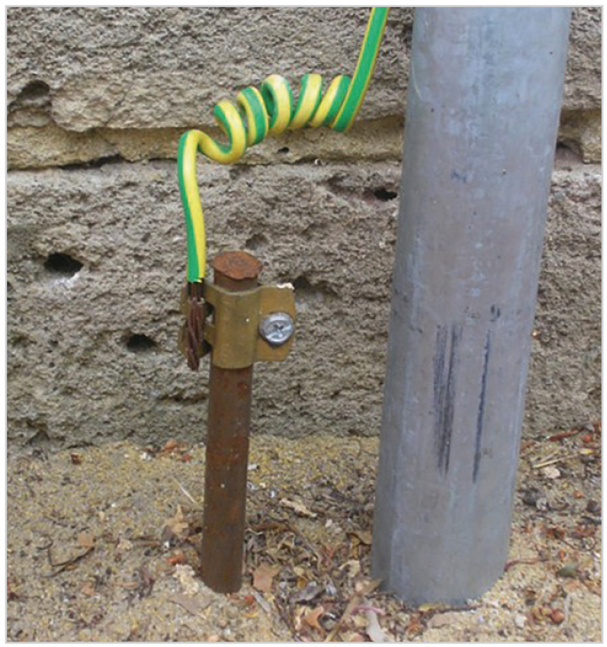 Заземление – условно незначительная статья расходов для устройства. Подходят части арматуры или металлические прутья не меньше 120 сантиметров в длину, 3/4 которых должно находиться под землёй. Забивать арматуру нужно с внешней стороны изгороди, примерно на расстоянии 1 метра, недалеко от генератора. На один участок – одно заземление (рис. 10).
