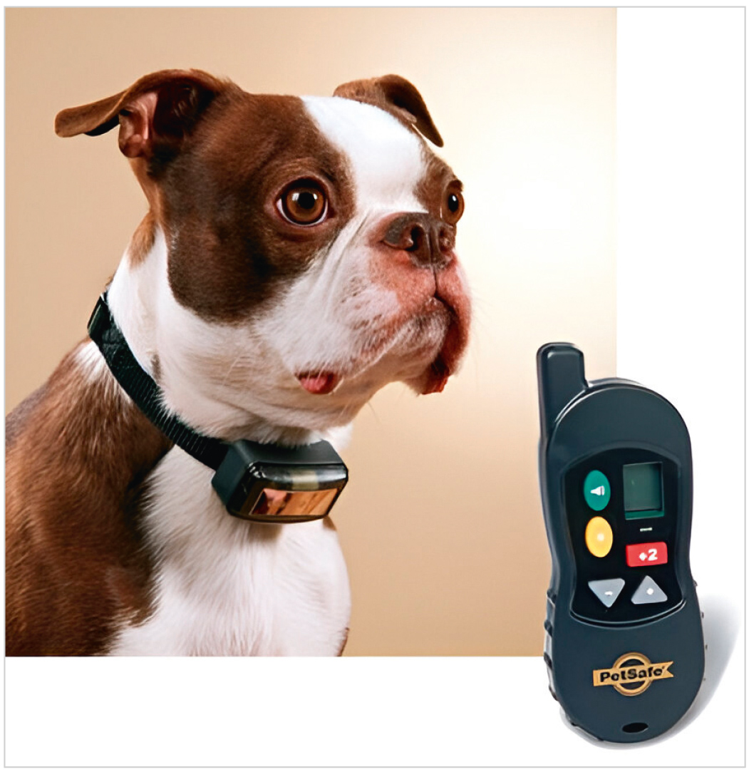 Владельцы мелких и крупных домашних животных используют специальные электронные ошейники для защиты себя и людей вокруг от внезапной агрессии со стороны животного. Альтернативные названия устройства – электрошоковый или дрессировочный ошейник. Устройство служит для того, чтобы своевременно подсказать животному «ошибочность его поведения» в текущей ситуации. Словесное внушение подкрепляется электростатическим импульсом, регулируемым по уровню воздействия и длительности. Тот же электронный ошейник применяют для дрессировки животных. Устройство создаёт животному дискомфортные и неприятные ощущения во время совершения питомцем нежелательного действия или невыполнения команды. Если разбирать конкретно собачий пример, то на животном надет ошейник, а в руках хозяина или дрессировщика ПДУ с дальностью действия до 1 км (есть разные варианты и модели, а также способ связи). Устройство представлено на рис. 16.