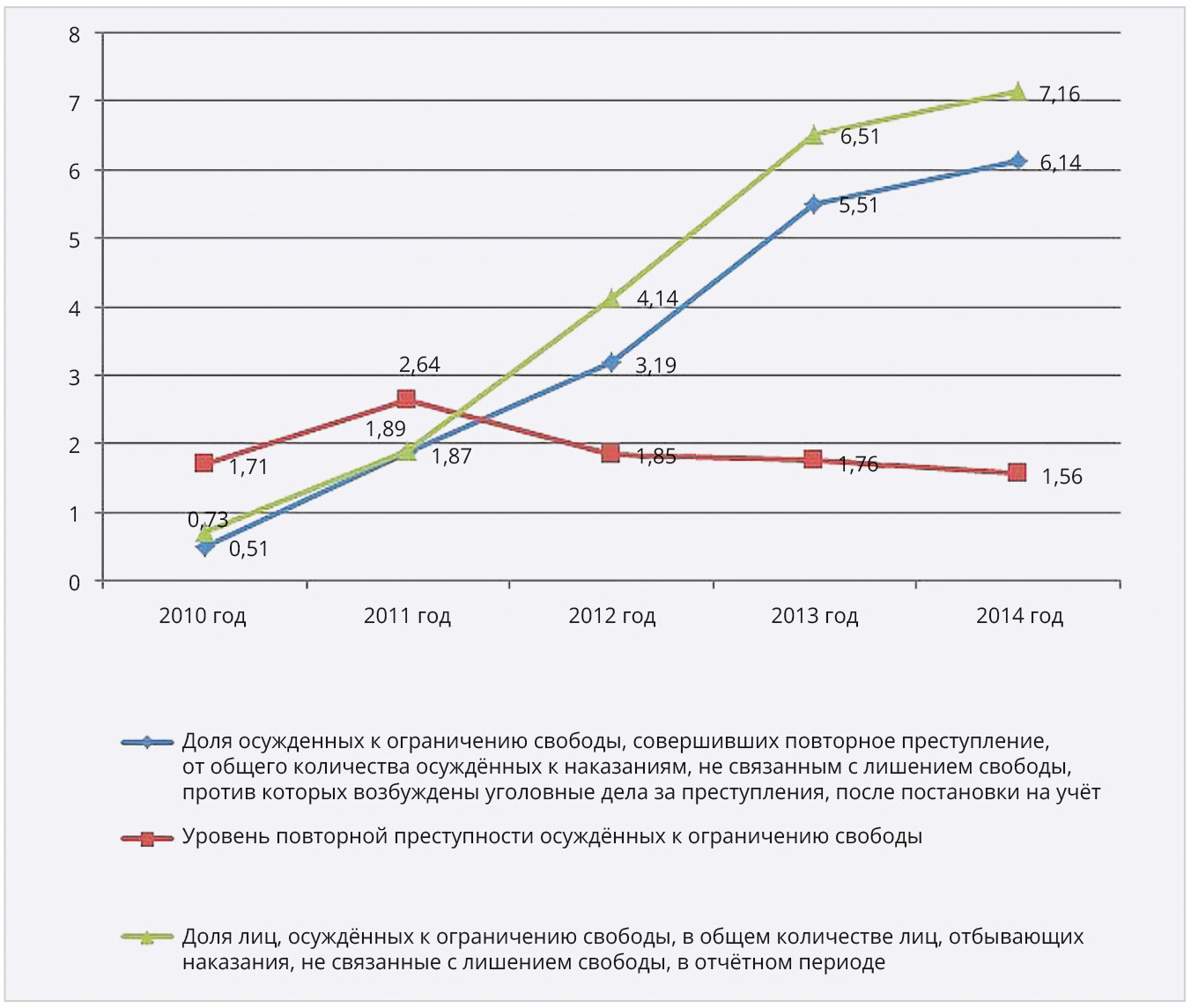 Из открытых статистических данных понятно, что в 2023 году под контролем СЭМПЛ в Росси и находились 22,5 тыс. осуждённых на ограничение свободы и 32,2 тыс. лиц, которым суд назначил домашний арест или запрет определённых действий. За один только год с помощью СЭМПЛ выявлено более 7 тыс. нарушений порядка и условий отбывания наказания и исполнения мер пресечения [1]. За более ранний период времени, кроме прочего, есть статистика, представленная в научной (рецензируемой ВАК РФ) работе [2]. В этой связи может быть интересен график роста применения электронных браслетов и СЭМПЛ в целом в последние 10 лет в России, представленный на рис. 4.