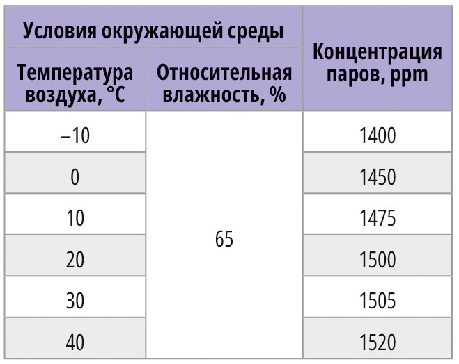 Значимым показателем является концентрация газа, выражающаяся в миллионной доле (ppm). К примеру, концентрация газа в значении 20 ppm означает концентрацию паров алкоголя 20×10–6.