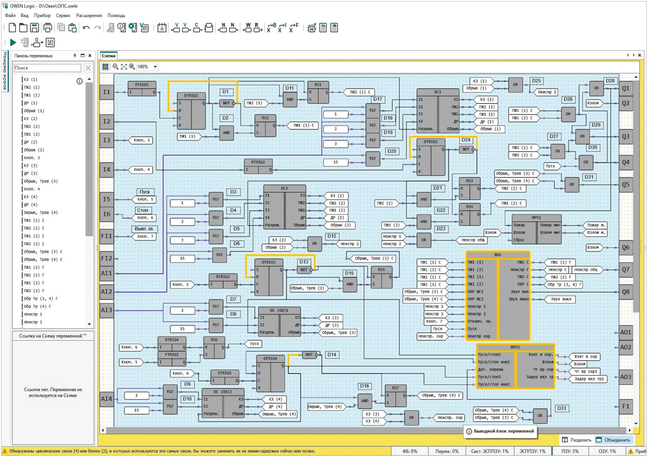 Программа на языке FBD в среде QWEN LOGIC для ПКП