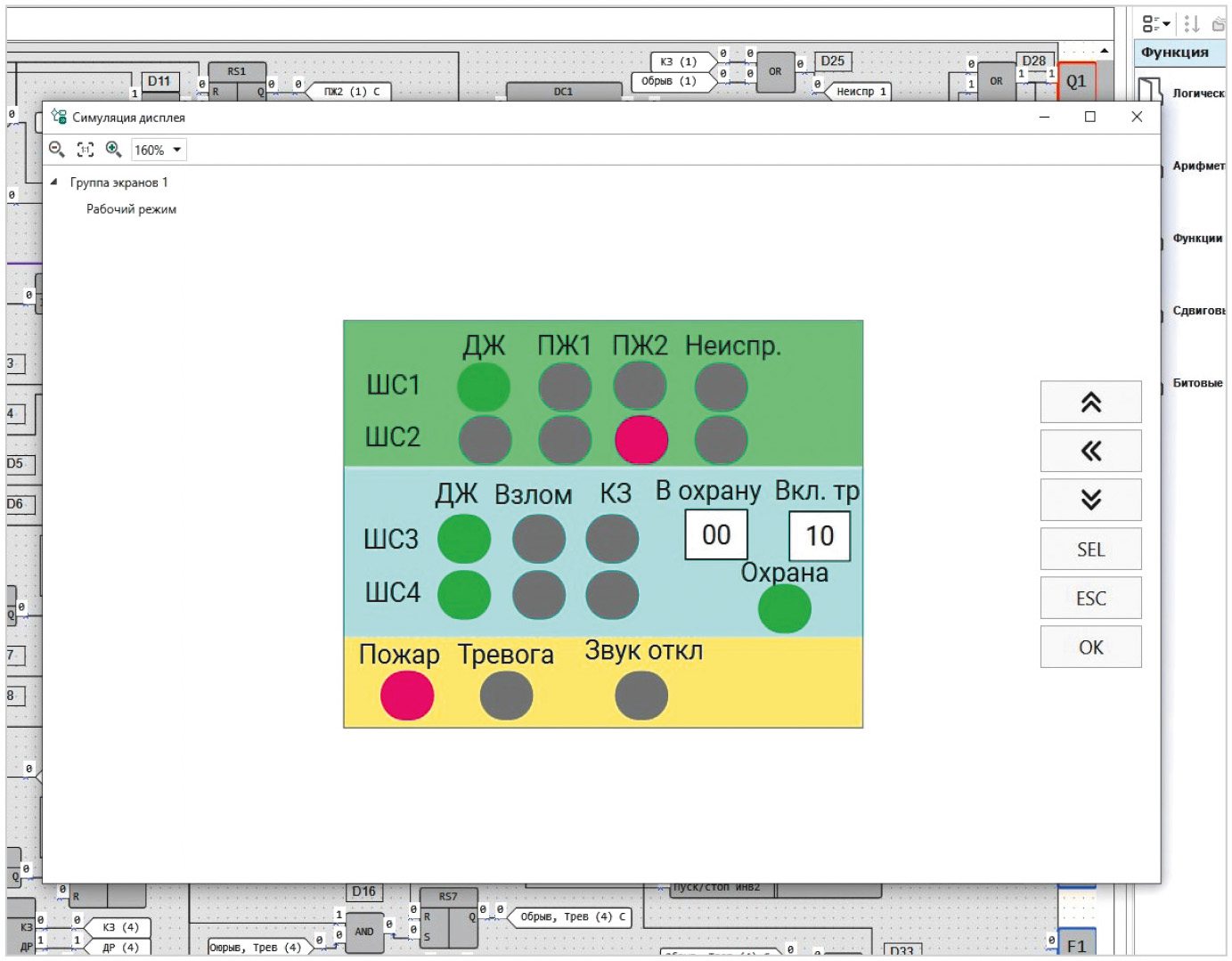 На рис. 6 приведён скриншот менеджера экранов в среде OWEN Logic в режиме симуляции.