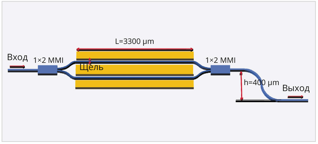 В основе архитектуры схемы (рис. 3) использована классическая модель интерферометра Маха – Цендера (ММЦ).