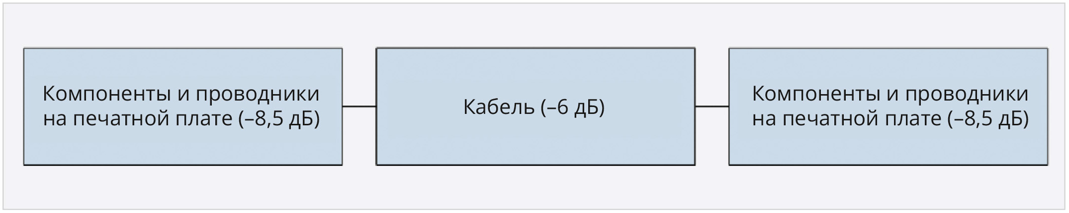 Максимальное ослабление сигнала при передаче данных по USB 3.1 не должно превышать –23 дБ [2]. При этом схема распределения потерь выглядит так, как показано на рис. 4.