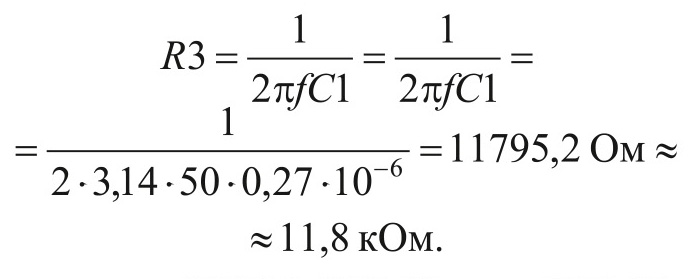Задавшись ёмкостью конденсатора C1 = 0,27 мкФ, было определено сопротивление резистора R3: