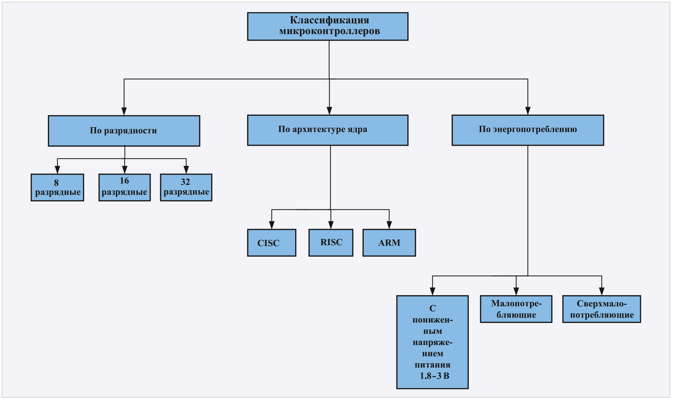 Наиболее распространённая классификация современных микроконтроллеров показана на рис. 3.