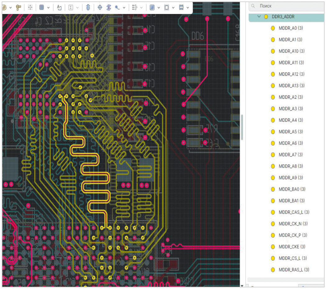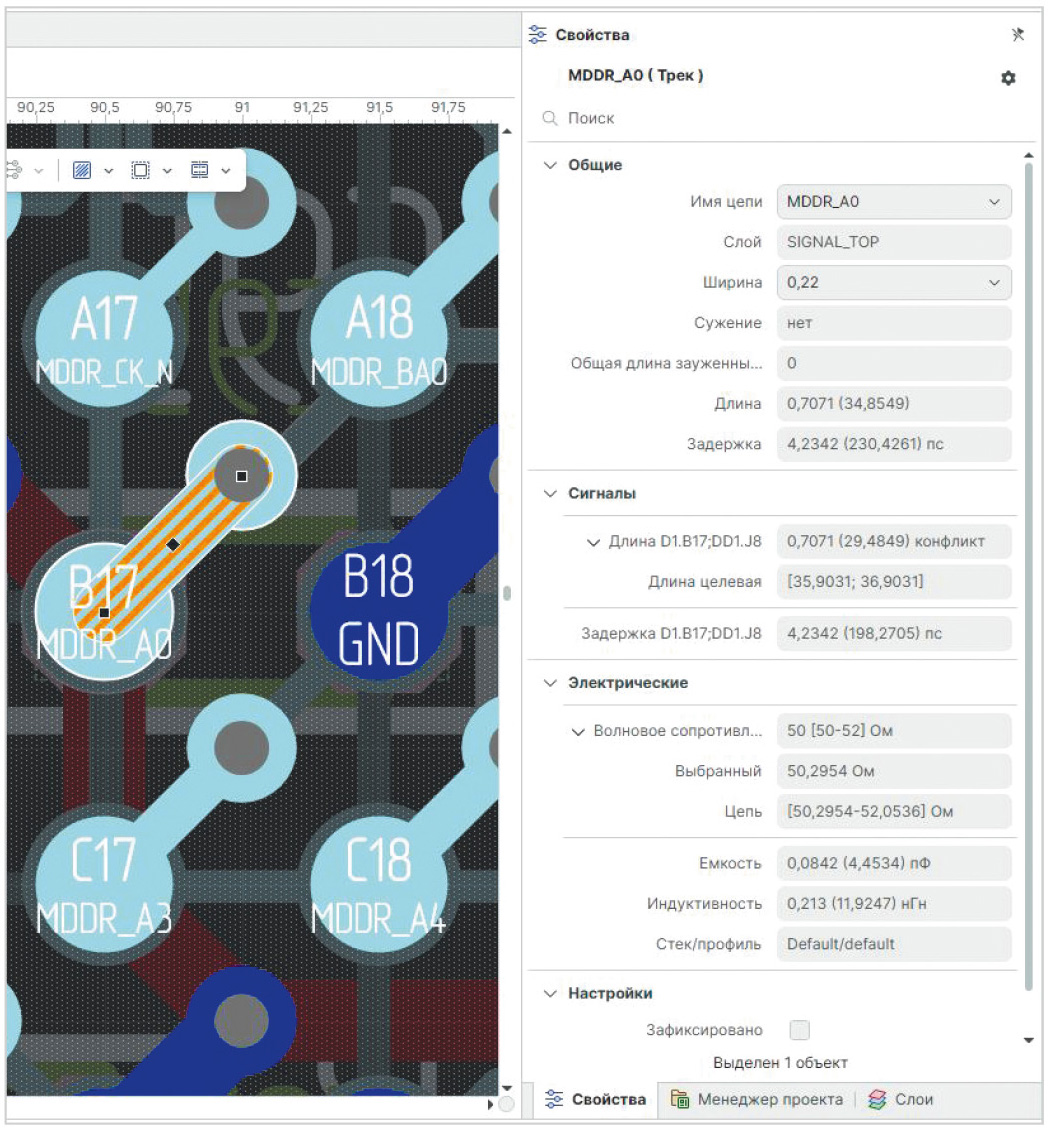 Рассмотрим в редакторе платы трек MDDR_A0 (рис. 4):