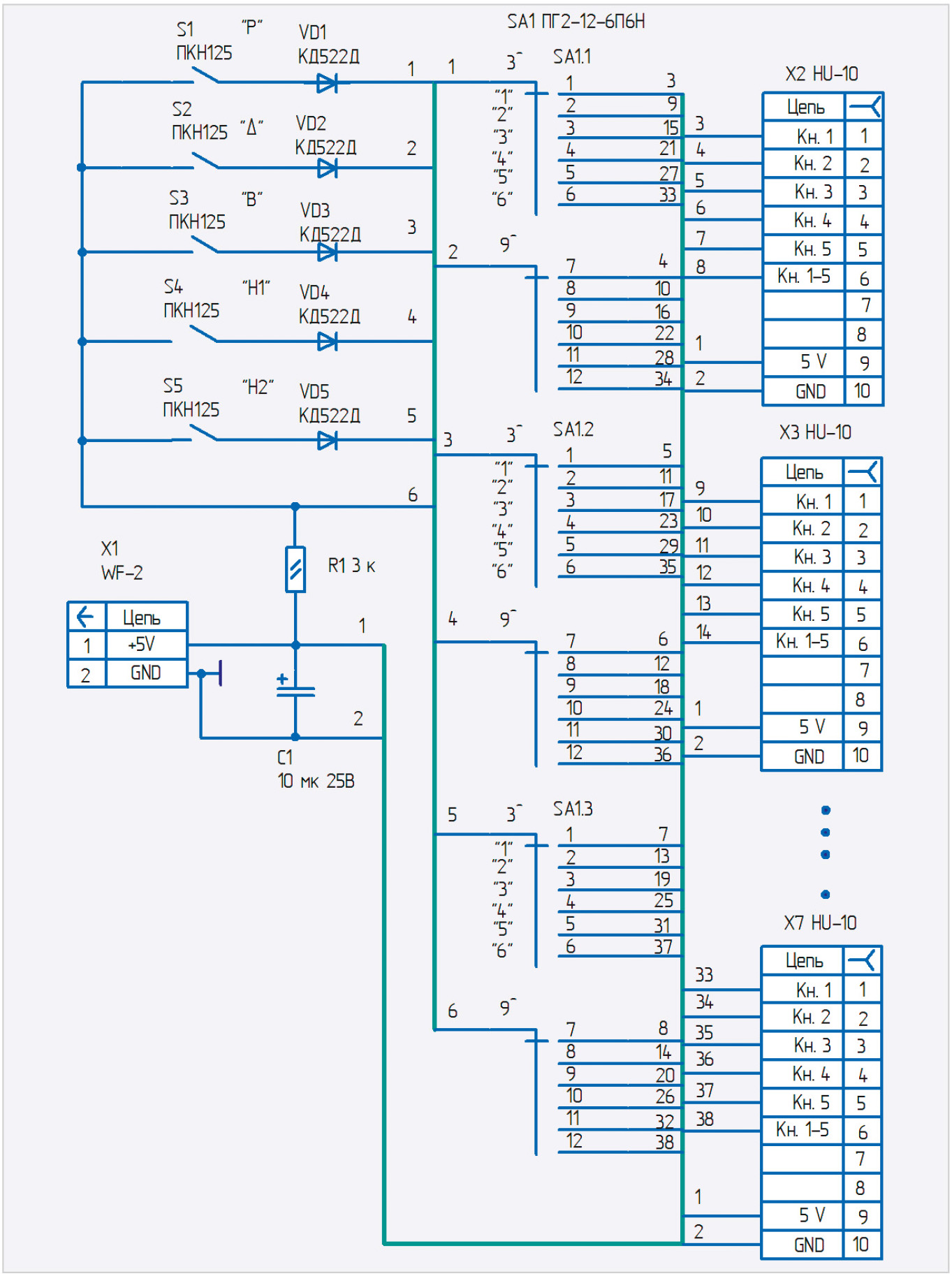 Принципиальная схема платы клавиатуры представлена на рис. 2.