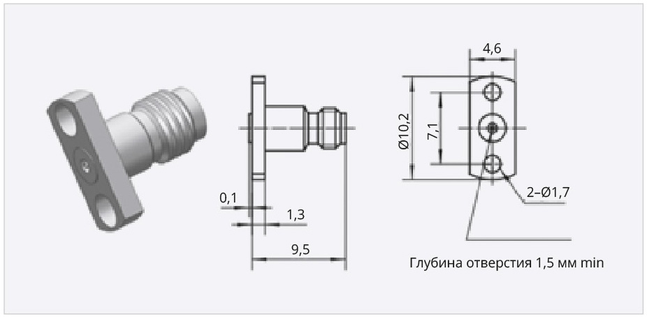 Стандартные резьбовые соединители мм-диапазона компании Mechanc имеют модульную конструкцию и состоят из двух основных компонентов: фланцевого соединителя и СВЧ-ввода. СВЧ-ввод устанавливают в стенке корпуса изделия, а сам соединитель является съёмным и может быть легко заменён в случае повреждения. Такая конструкция позволяет свести к минимуму время простоя и обеспечивает непрерывную работу соединителя [5–6]. Однако СВЧ-вводы разных типов компания не выпускает.
