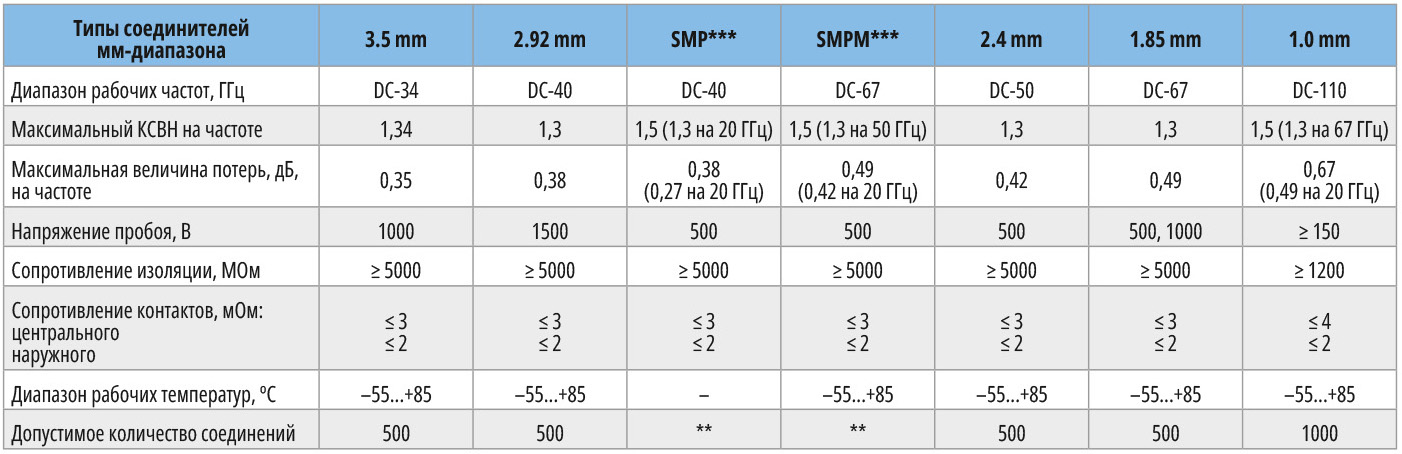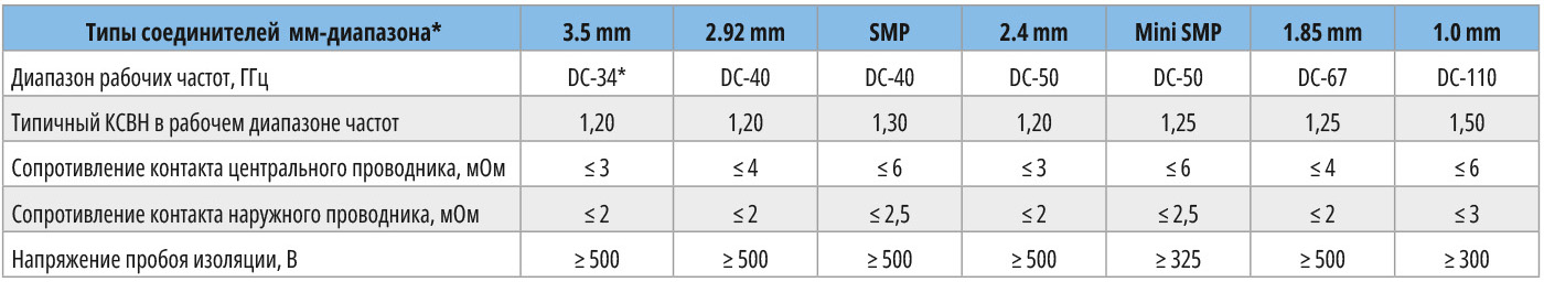 Технические характеристики всех соединителей мм-диапазона этой компании приведены в табл. 3 [5–6, 8–14].