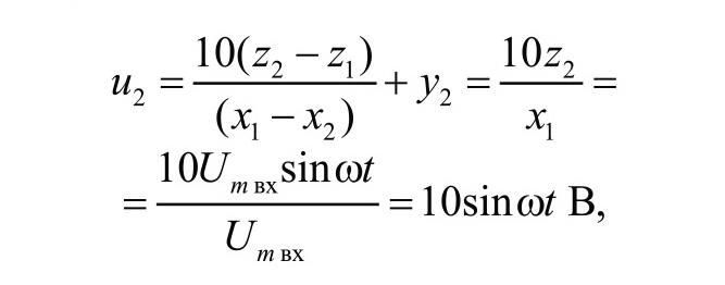 В результате на выходе ОУ DA5.2 и на выходе удвоителя частоты УЧ формируется переменное синусоидальное напряжение u4 амплитудой 10 В (рис. 3):